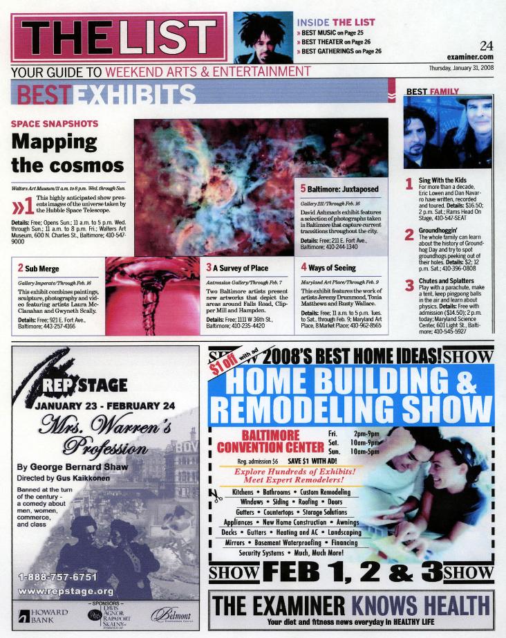 | 5th Best Exhibition as reviewed for "The List" in the Baltimore Examiner 01.31.08 |